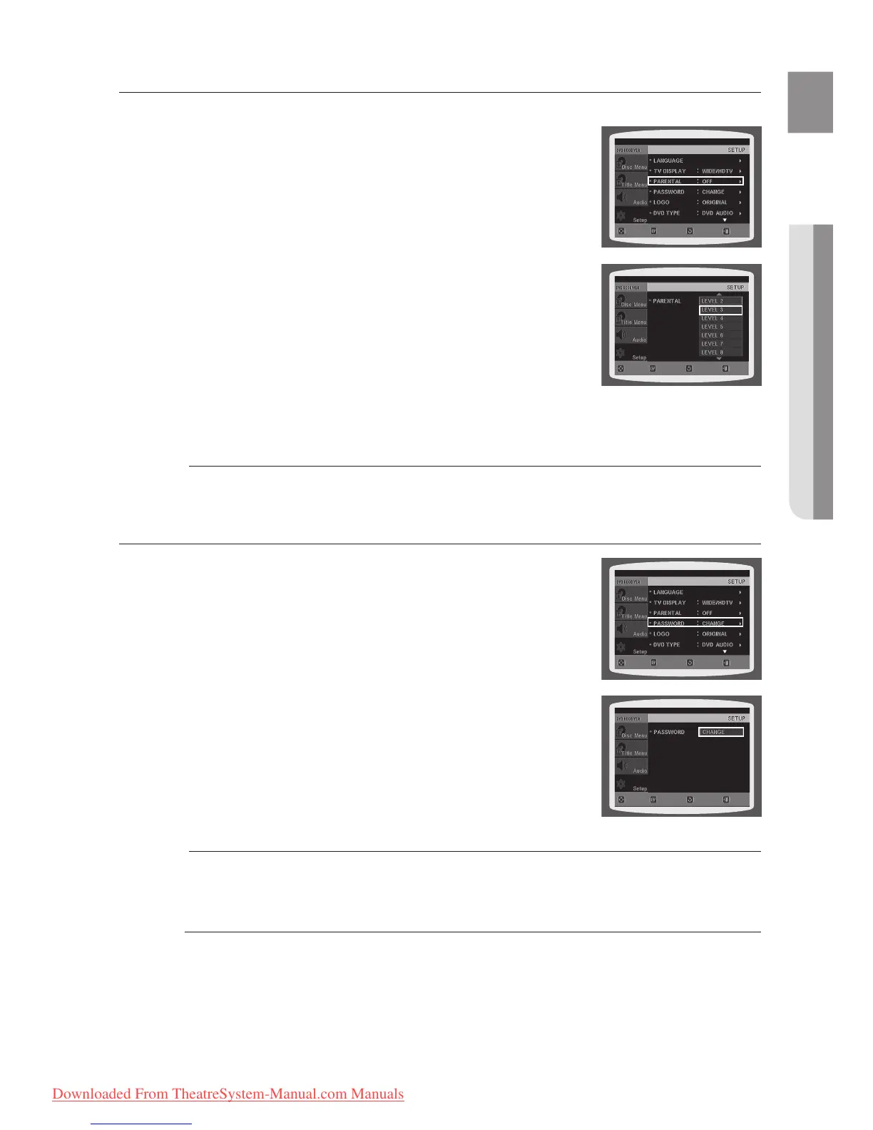 This function works only if a DVD disc contains the rating level information.