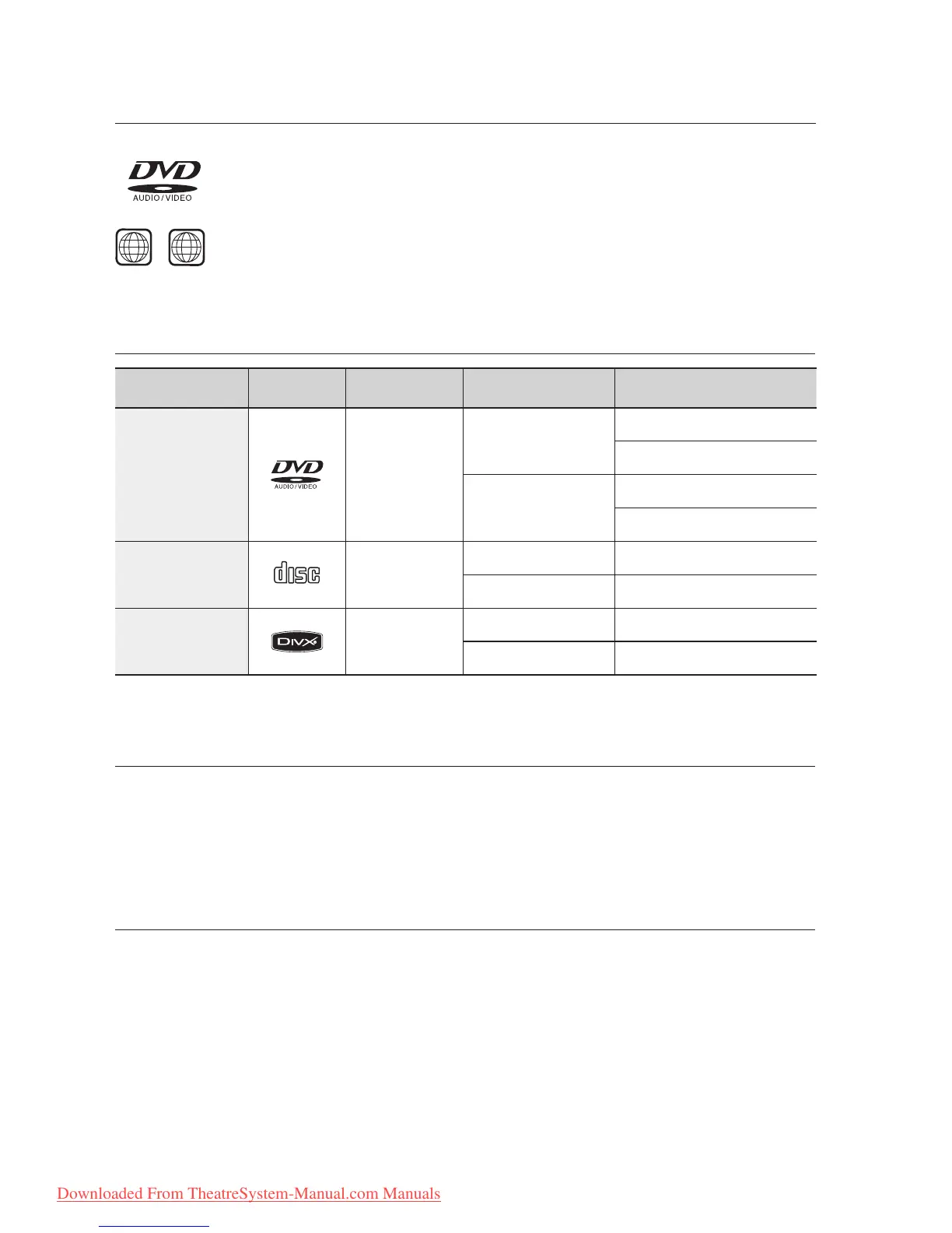 If such discs are played, a <CAN'T PLAY THIS DISC PLEASE, CHECK REGION CODE> message appears on the