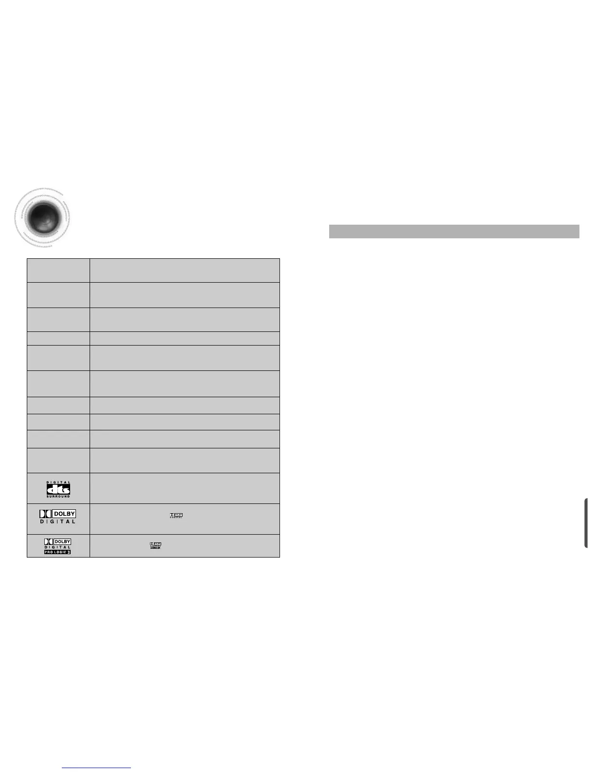 5.1 (or 6) Channel Digital Surround sound reproduced from DVDs and LDs