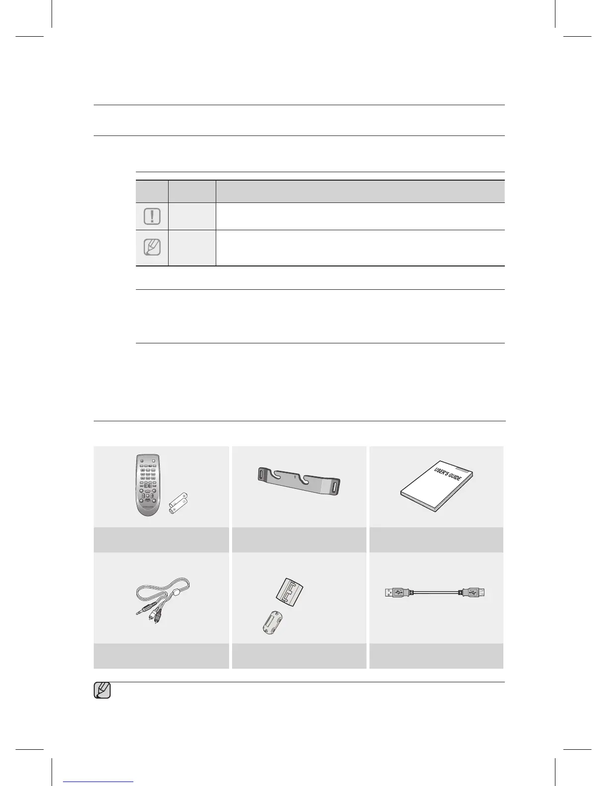 Check for the supplied accessories shown below.