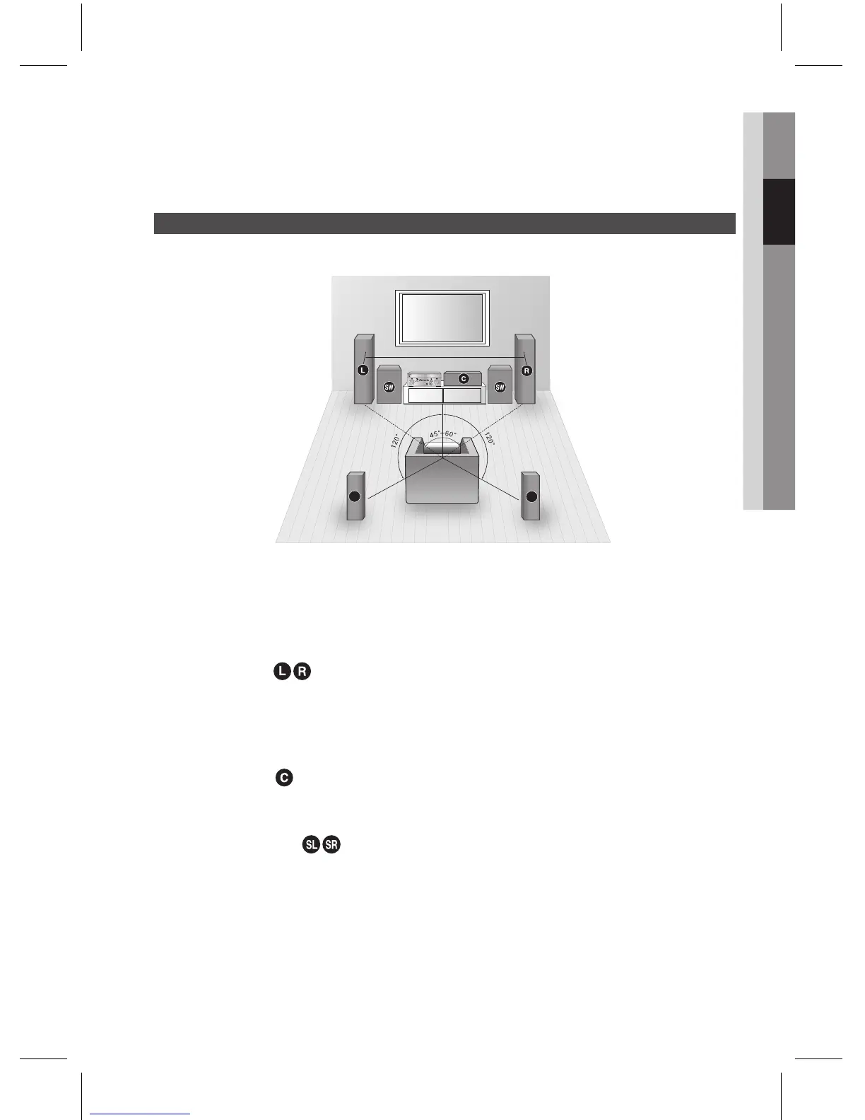 Place these speakers in front of your listening position, facing inwards (about 45°) toward you.