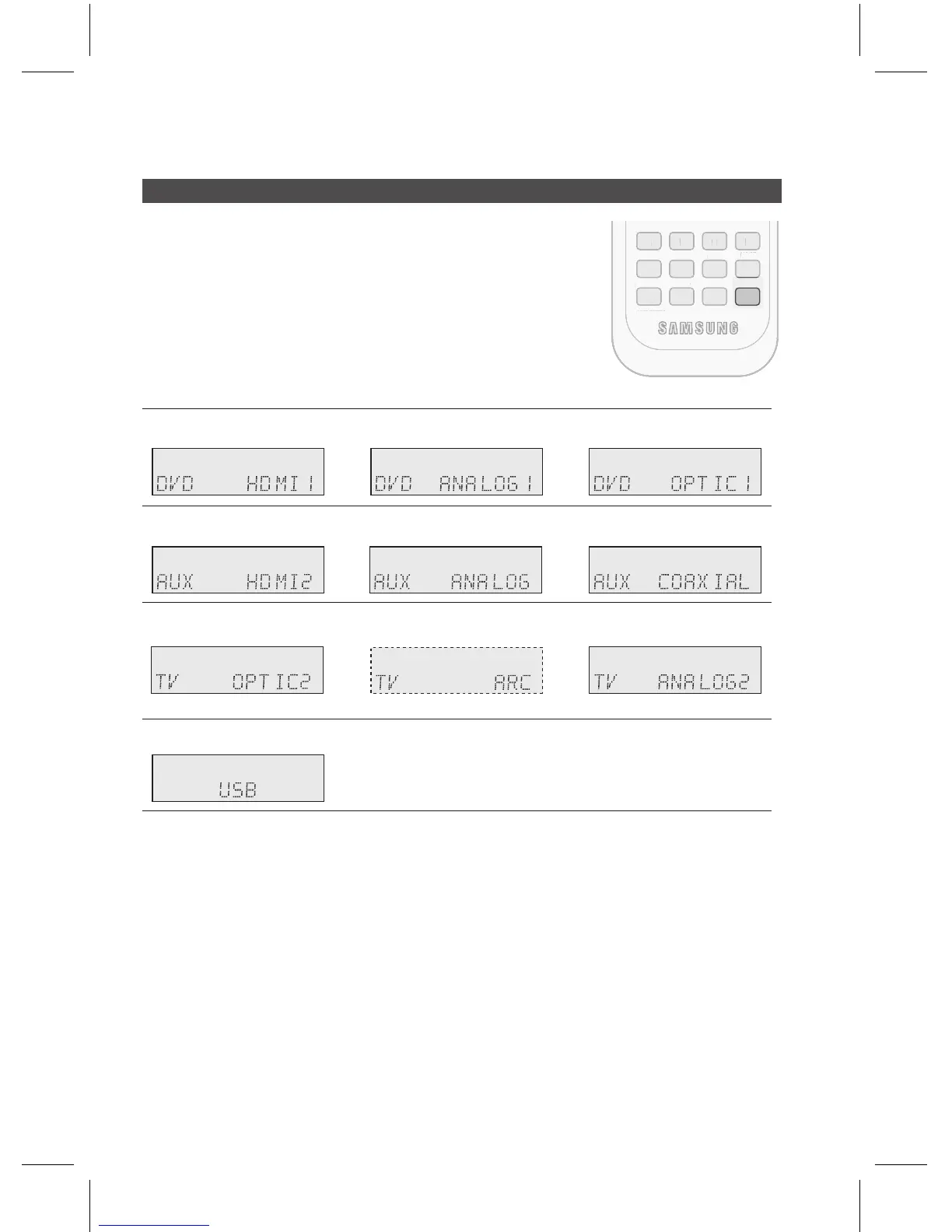 For the TV function, the TV ARC menu will be displayed only if an ARC-compliant TV is