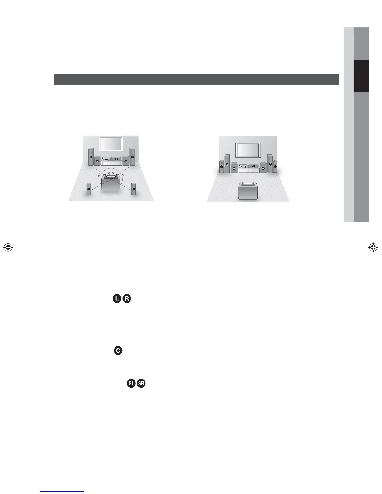 Align the front face of the front speakers with the front face of the center speaker or place them slightly in