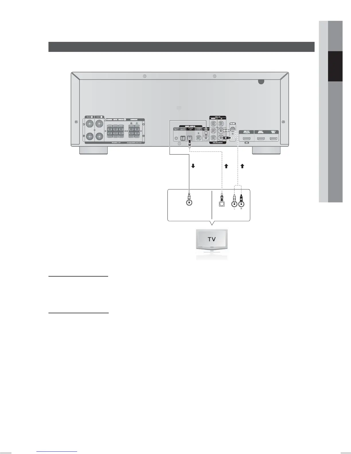 Conecte a entrada de áudio (AUDIO IN - TV) no receptor de AV à saída de áudio da TV.
