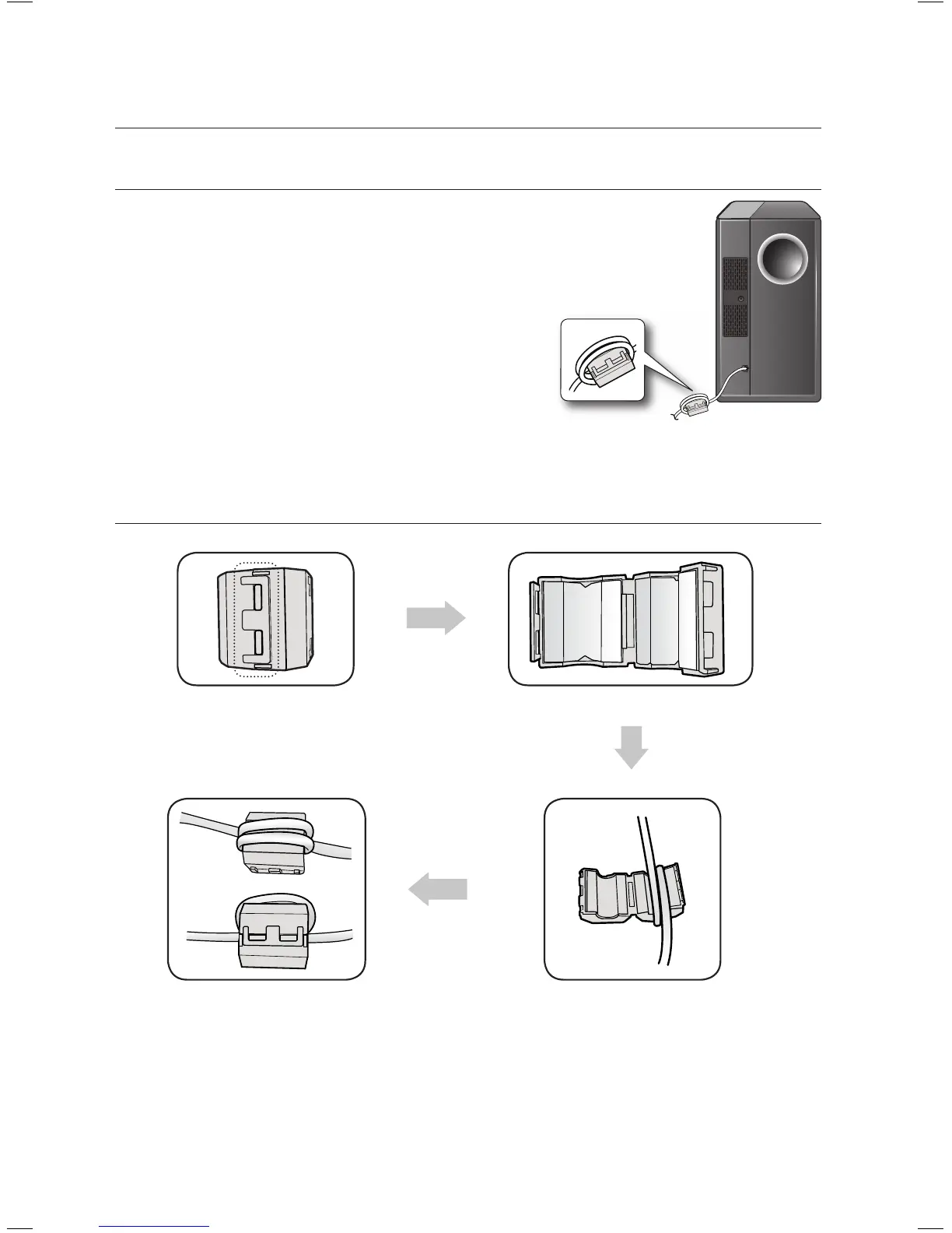 Attaching the Toroidal ferrite core to the power cord of the subwoofer