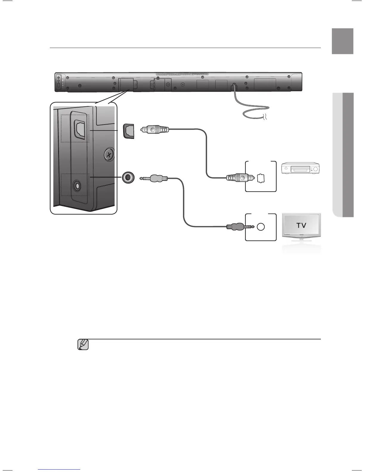Connect the Digital Input on the main unit to the OPTICAL OUT of