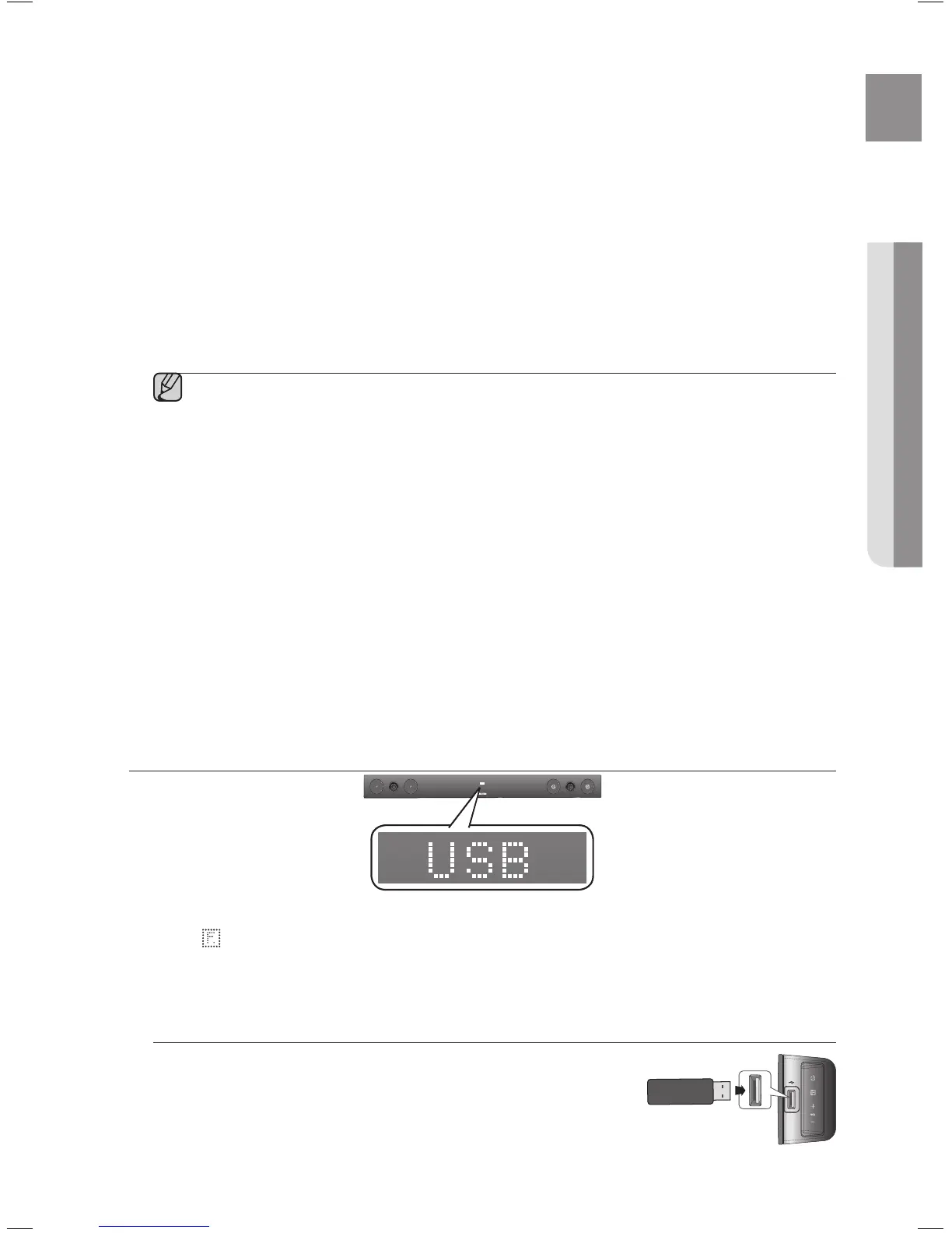 • The Soundbar supports the FAT16 and FAT32 file systems.