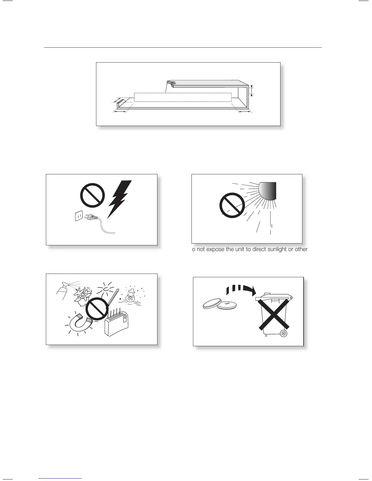 Do not expose the unit to direct sunlight or other heat