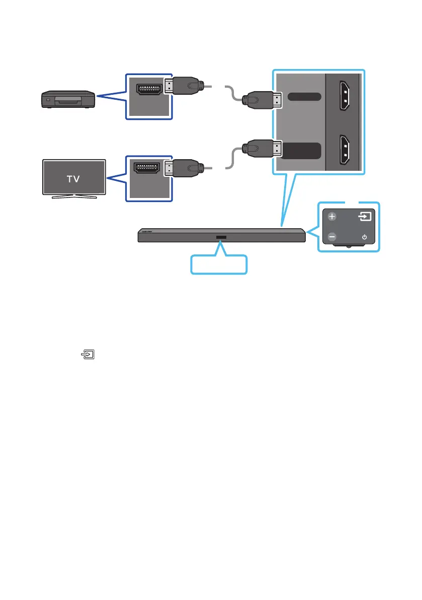 4. “HDMI” mode is displayed on the Soundbar display panel and sound plays.