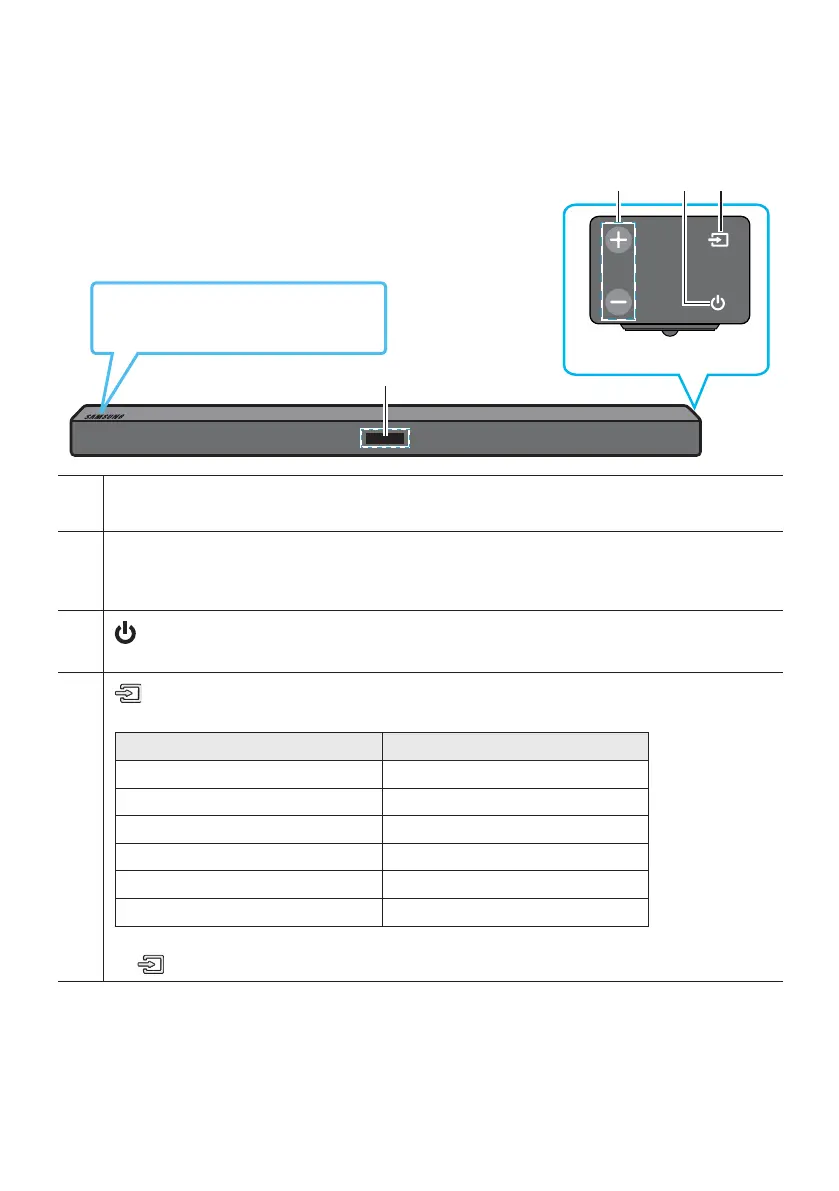 • When adjusted, the volume level appears on the Soundbar’s front display.