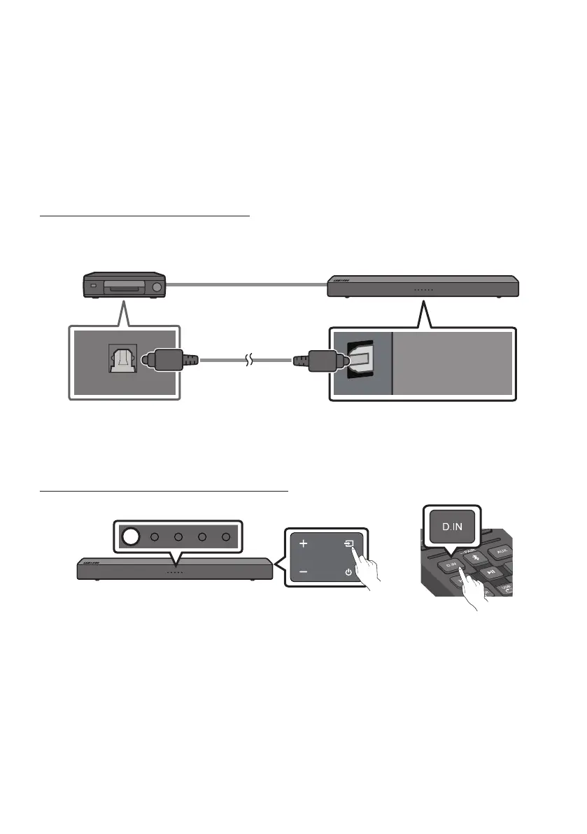 Anslut till en extern enhet genom ett optisk kabel eller analog kabel för att spela upp ljud från den