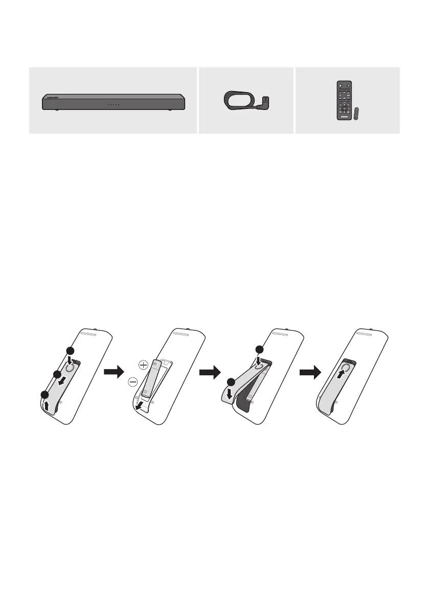 Soundbar-hovedenhed Strømkabel Fjernbetjening / Batteri