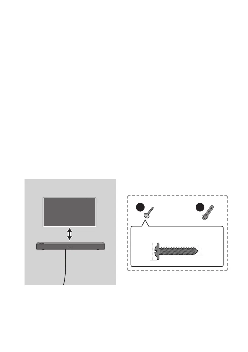 • Køb vægmonteringsskruer, der passer til typen og tykkelsen af den væg, du vil montere Soundbar