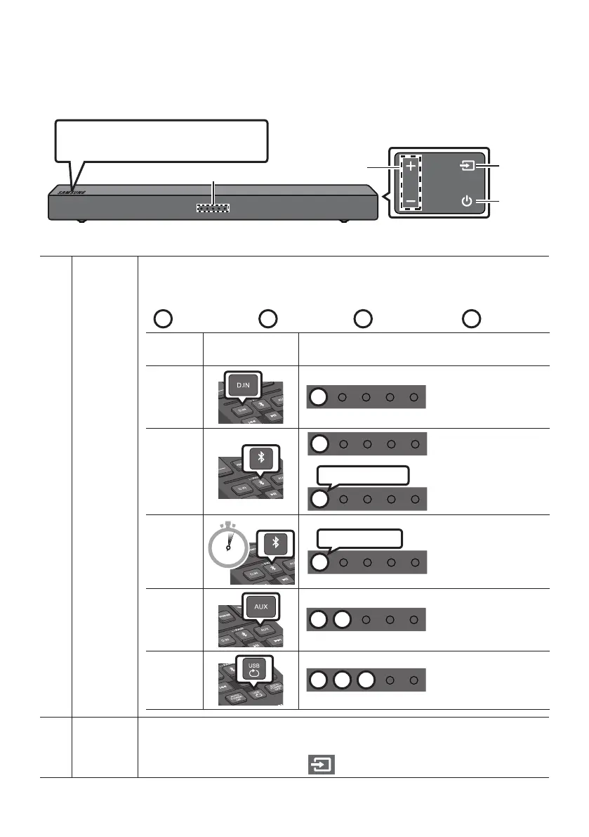 Valitsee ohjelmalähdetilan. (D.IN / Bluetooth / AUX / USB)
