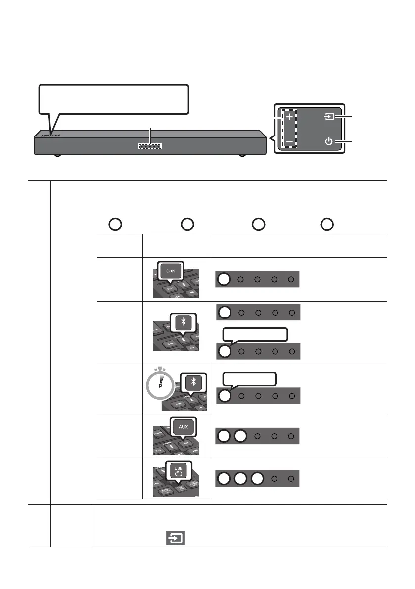The LED Indicator ashes, glows, or changes colour depending on the Soundbar's current
