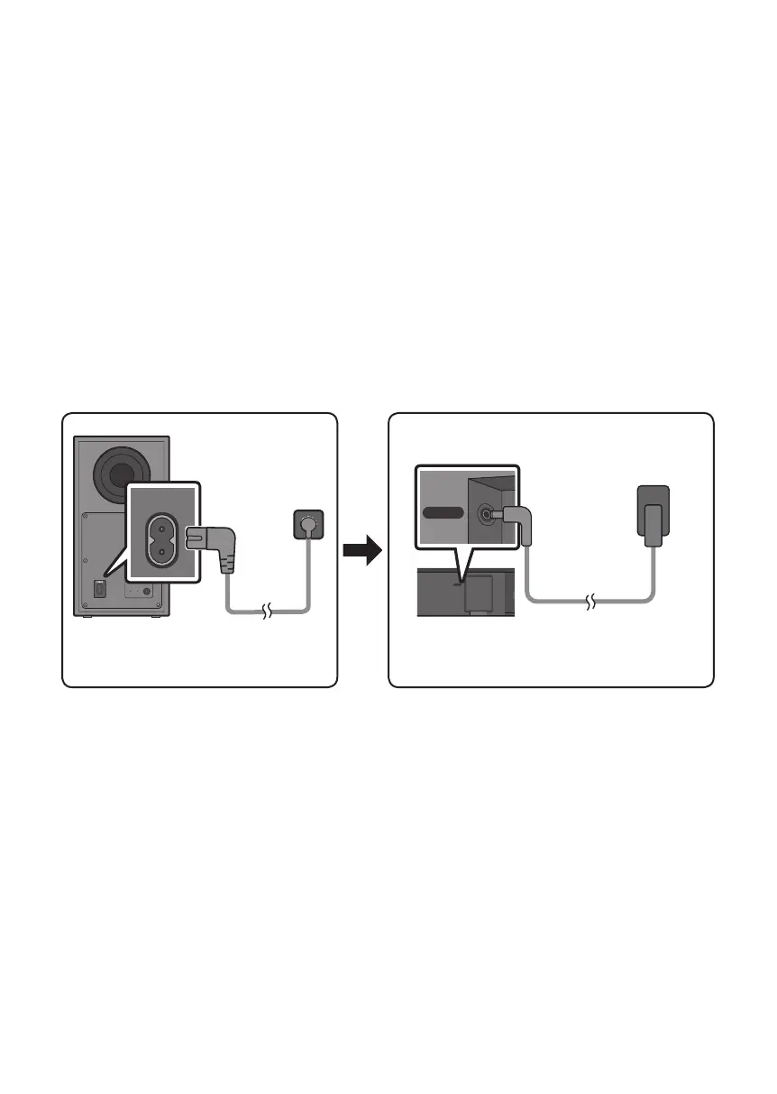 ) to connect the Subwoofer and Soundbar to an electrical outlet in
