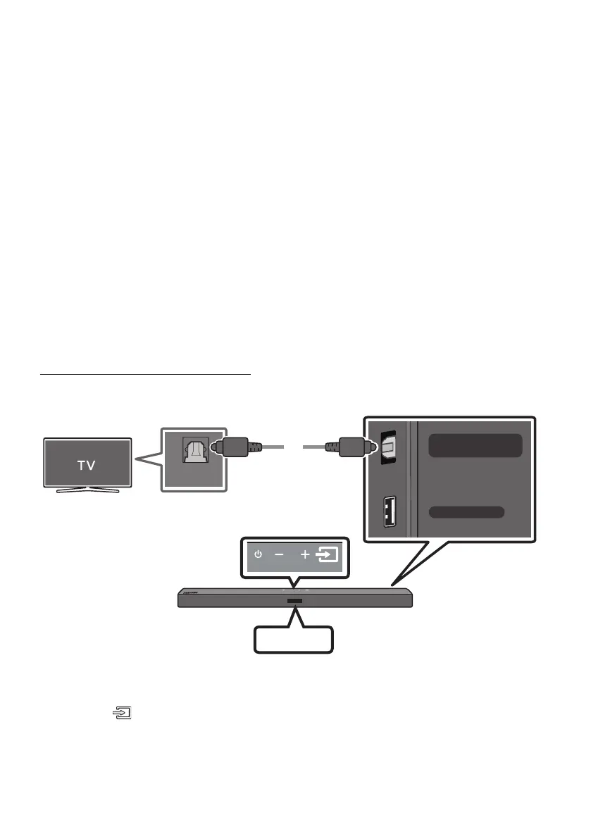 1. Connect the DIGITAL AUDIO IN (OPTICAL) jack on the Soundbar to the OPTICAL OUT jack of the TV