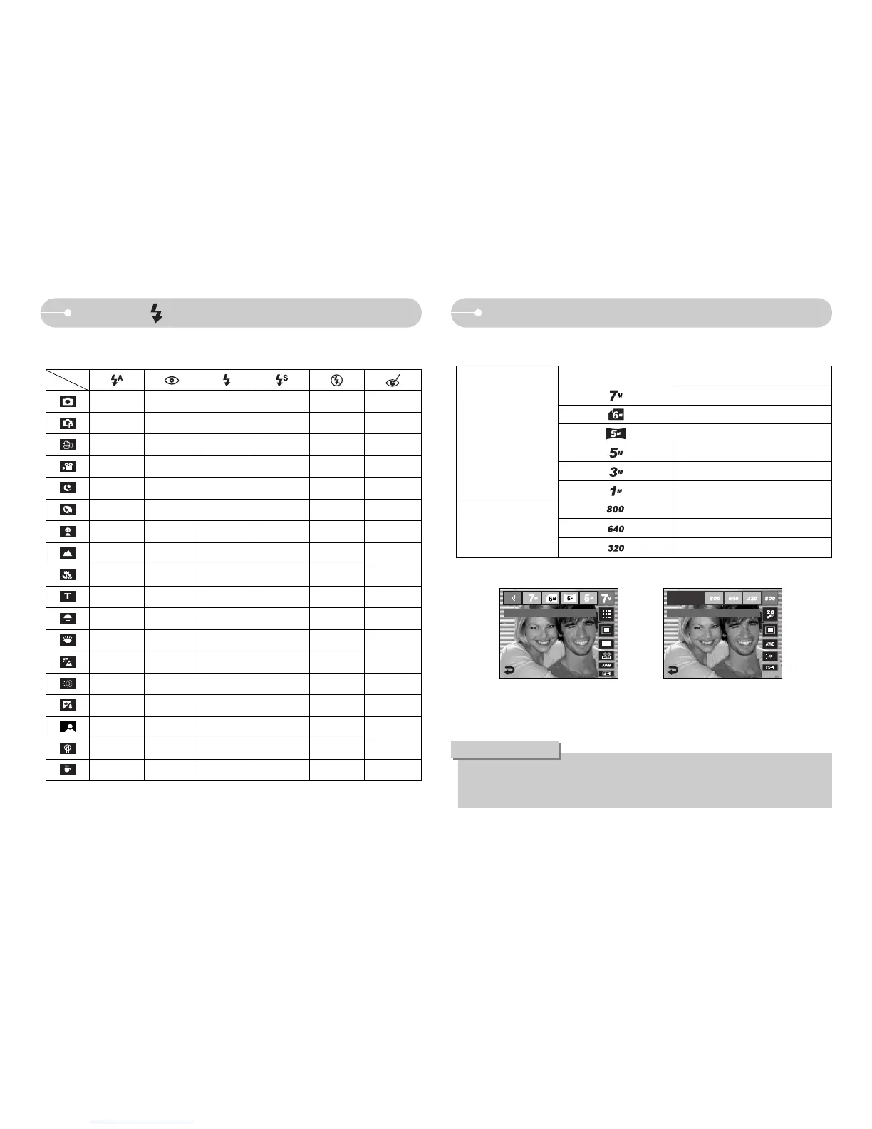 ƃ Available flash mode, by recording mode (ƃ : Selectable) ƈ You can select the image size appropriate for your application.