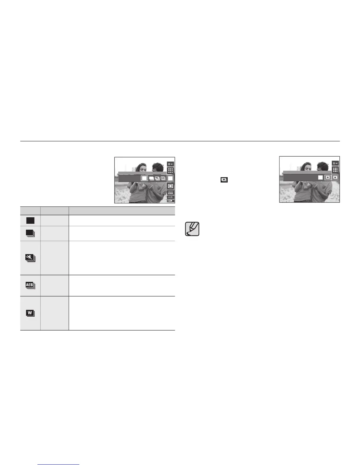 If less than 3 pictures are available in the memory, the AEB
