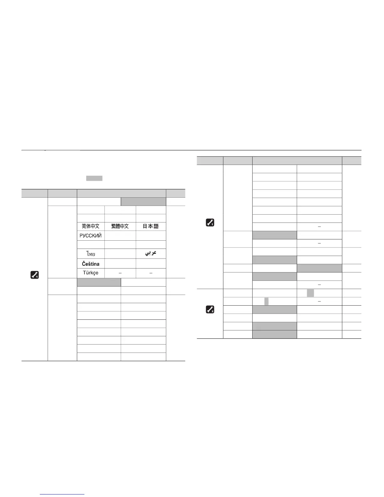 Setup menu
