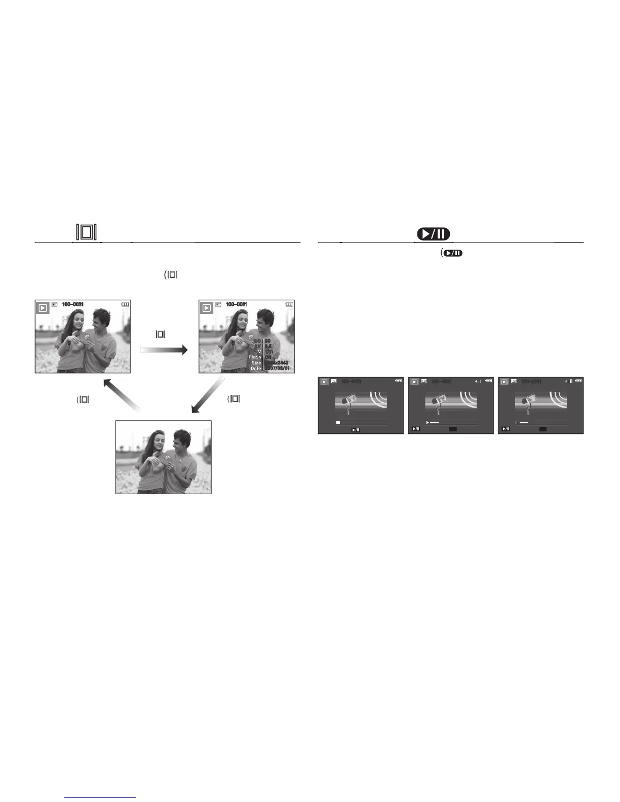 ·In Stop mode: Plays a still image with a voice memo, a voice fi le,