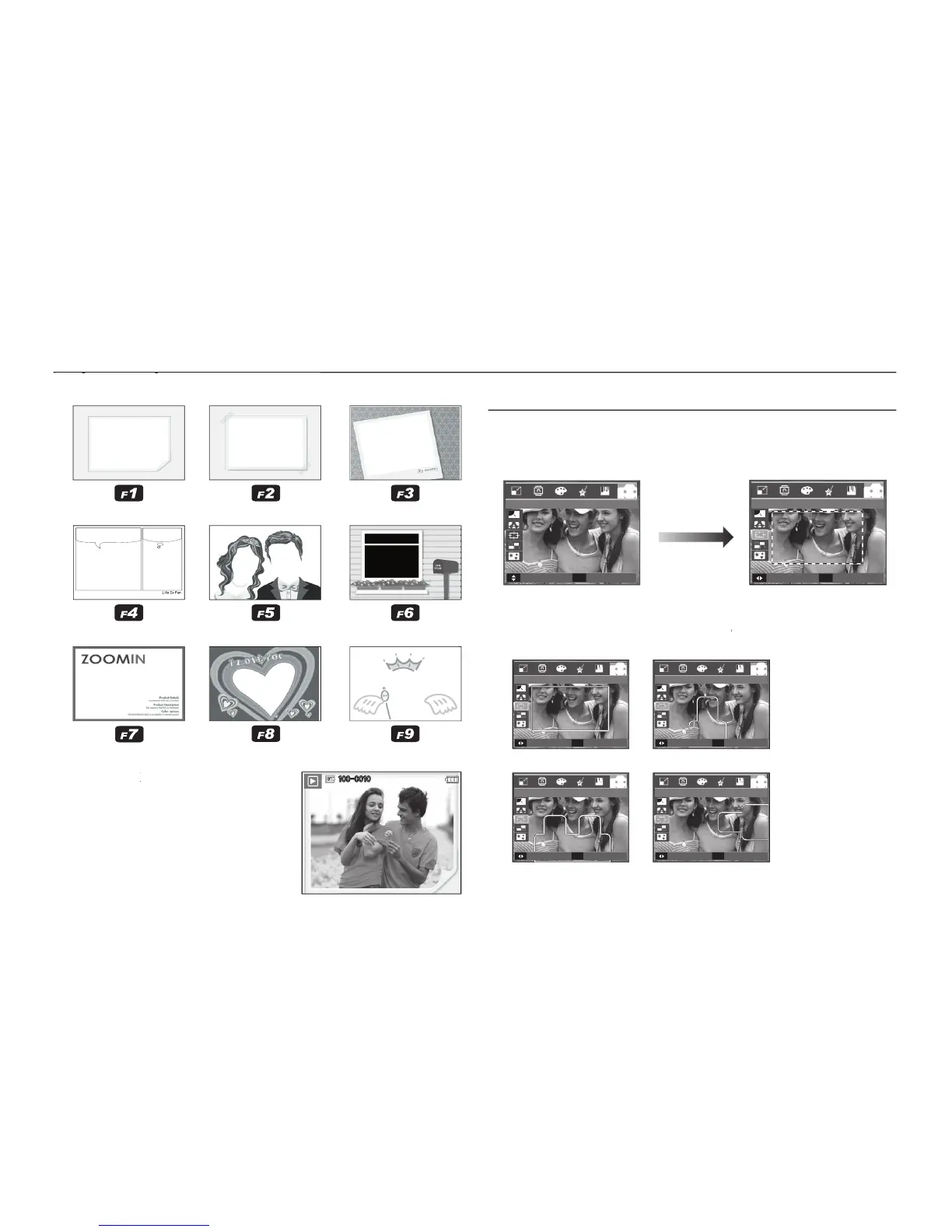 Samsung i85 - E (Effect) button: FUN; Pre-set focus frames