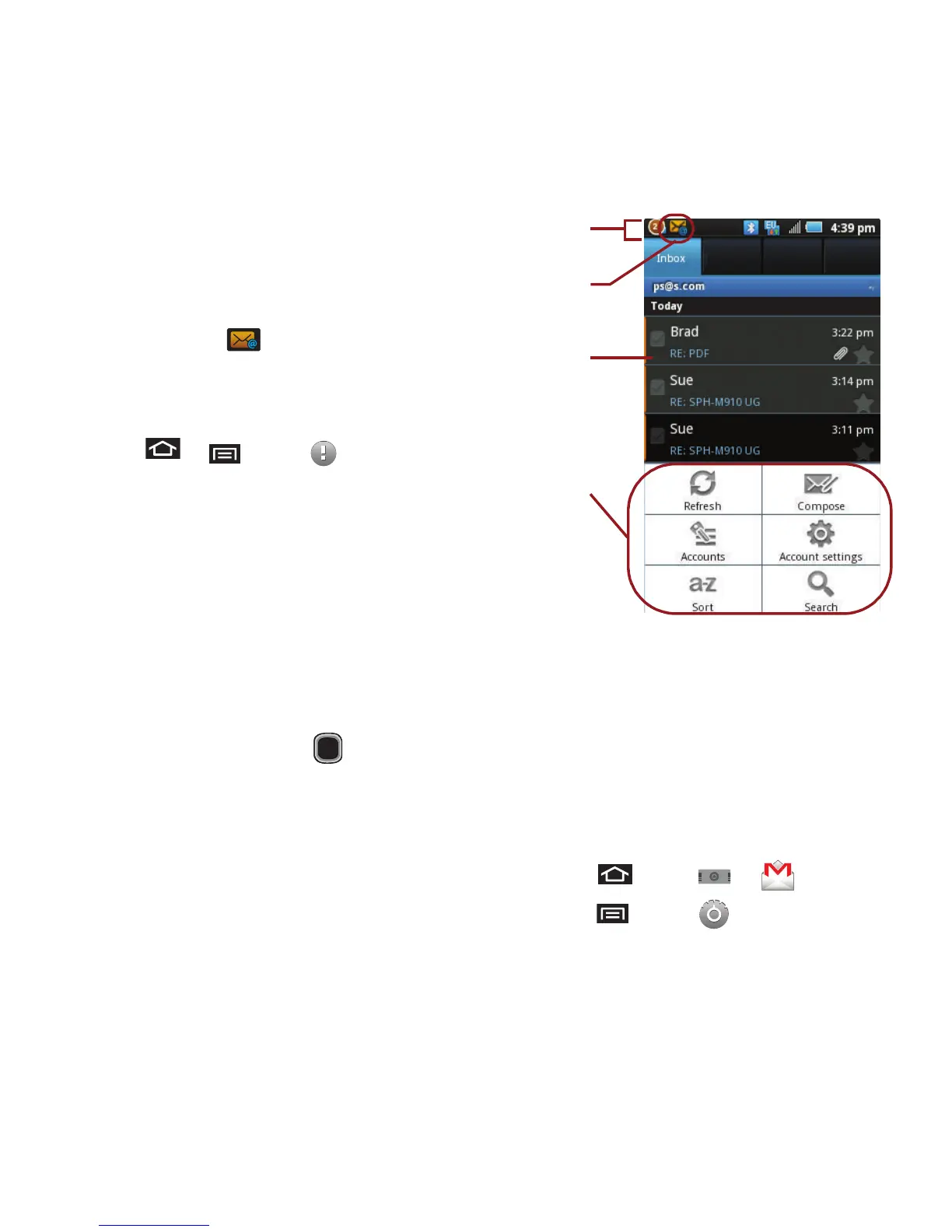 device displays the email message in the status bar