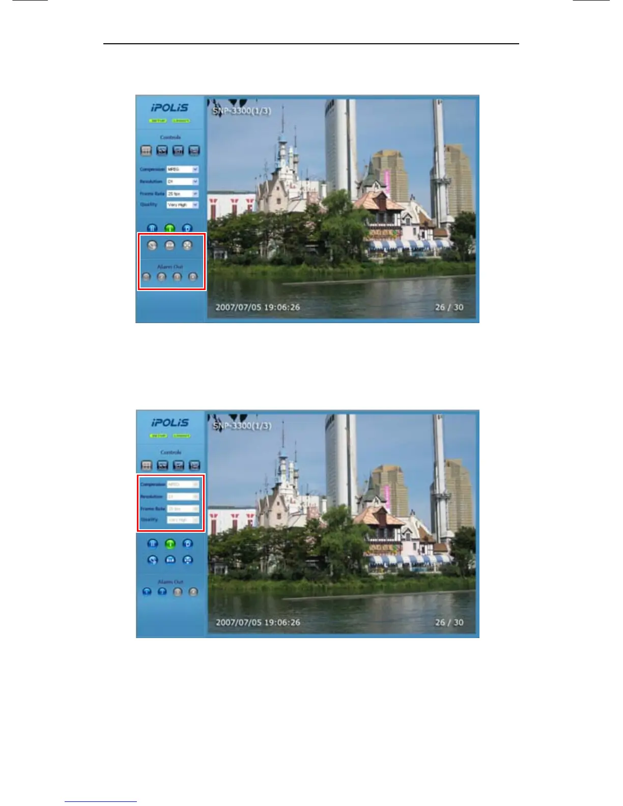 Pan, tilt, zoom, audio output, alarm output function icon is