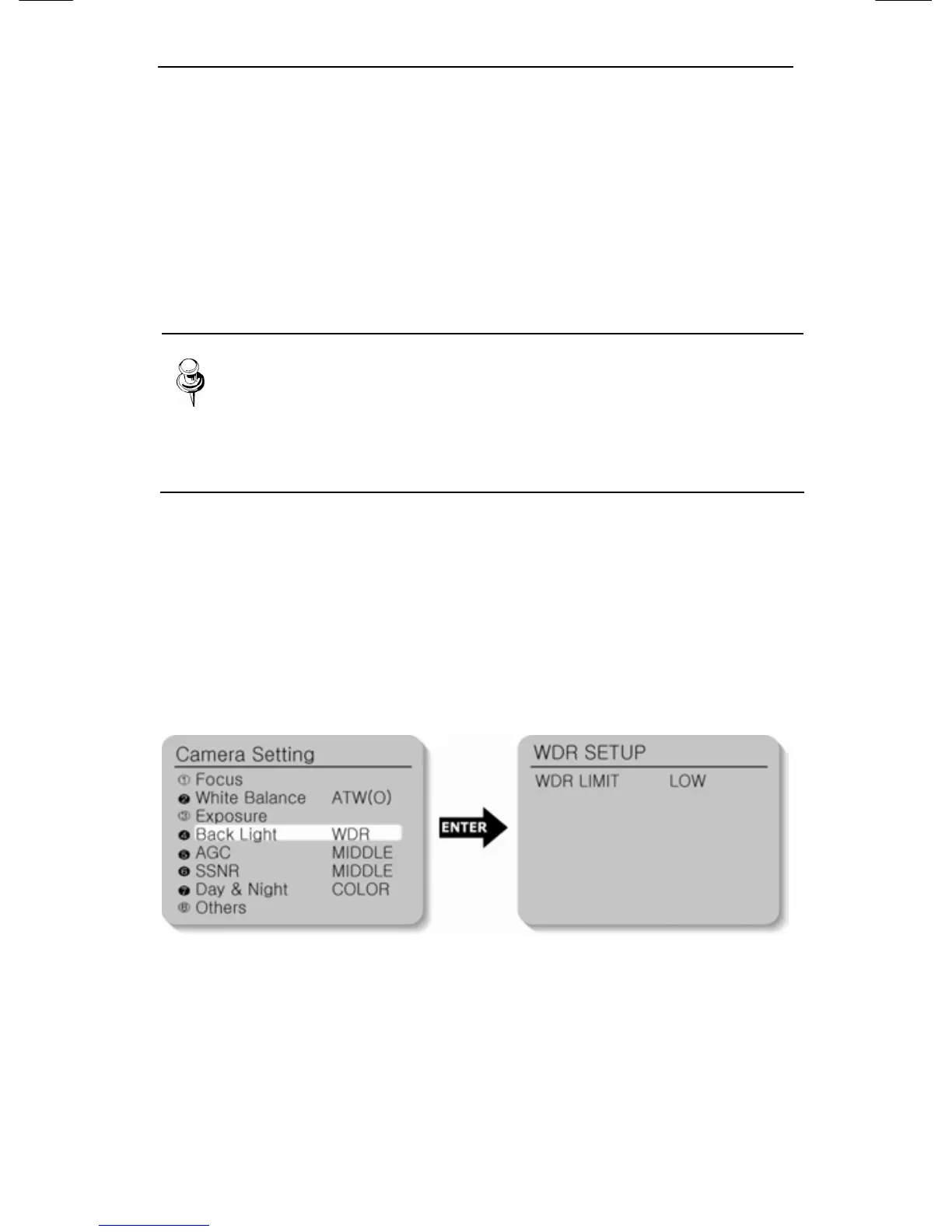 Off : WDR function is cancelled.