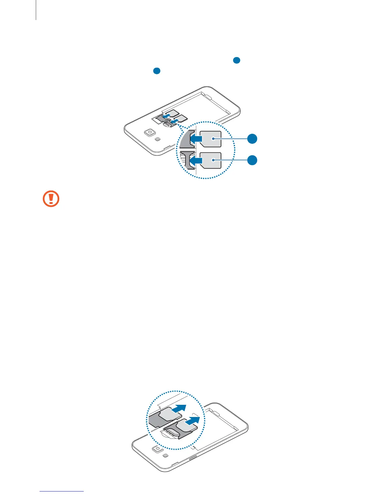 Insert the primary SIM or USIM card into SIM card slot 1 (