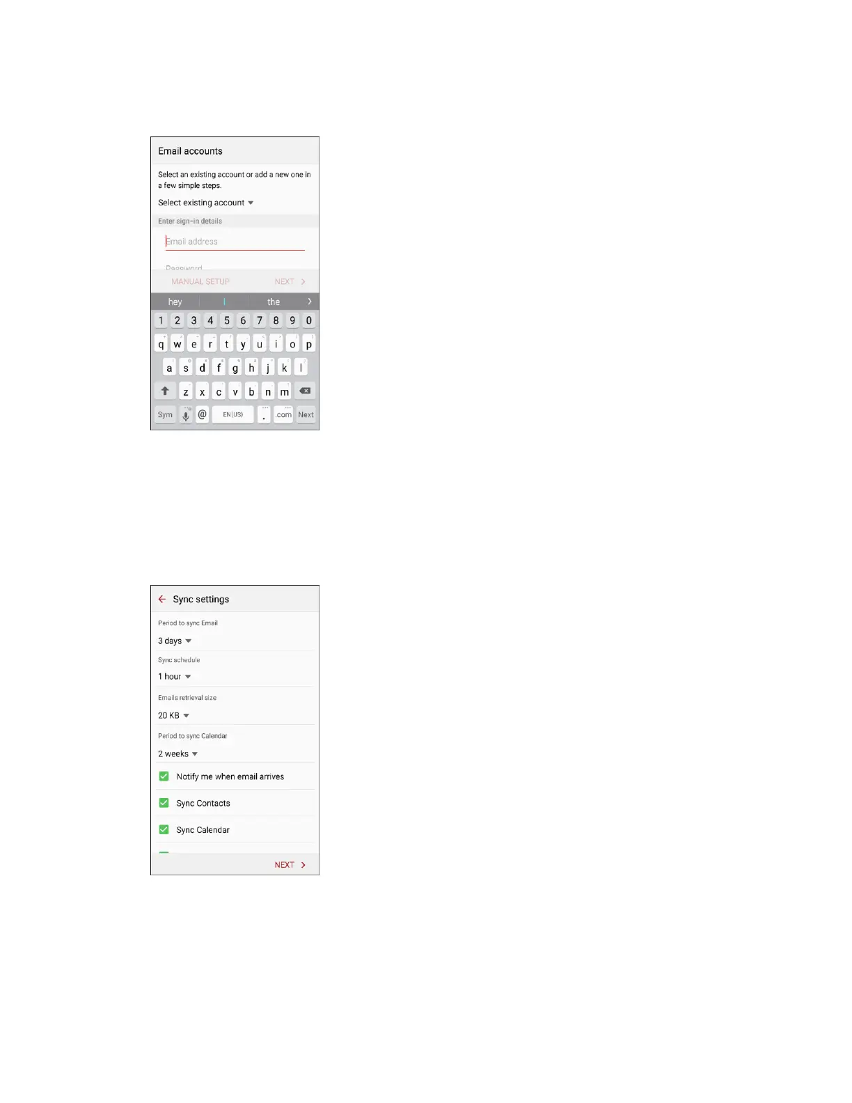 Enter the Email address and Password for the email account and then tap Next. 3.