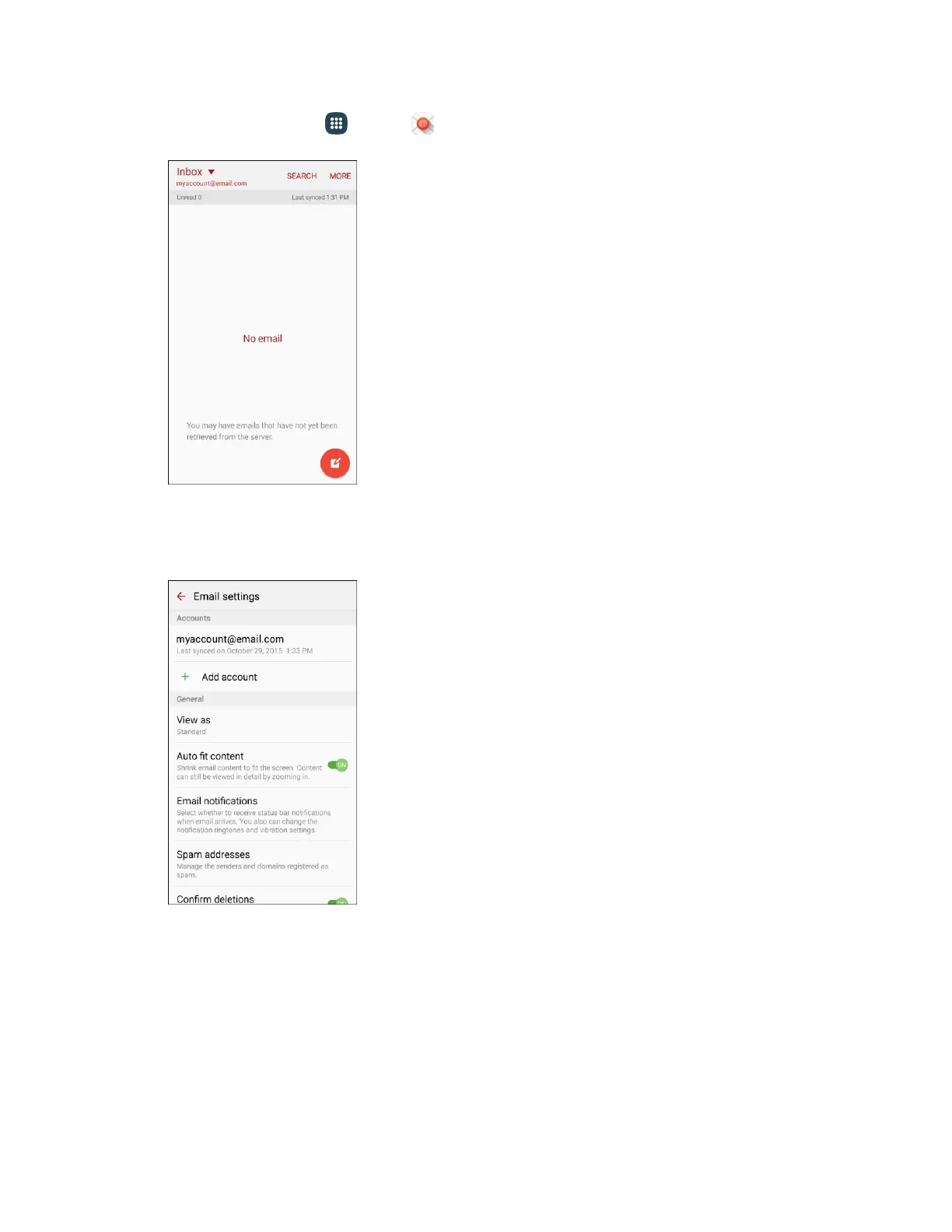 From home, tap Apps > Email . 1.