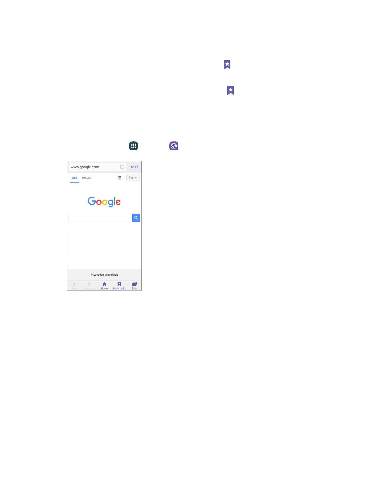 ● Deleting Bookmarks: From the browser, tap Bookmarks , touch and hold a bookmark, and