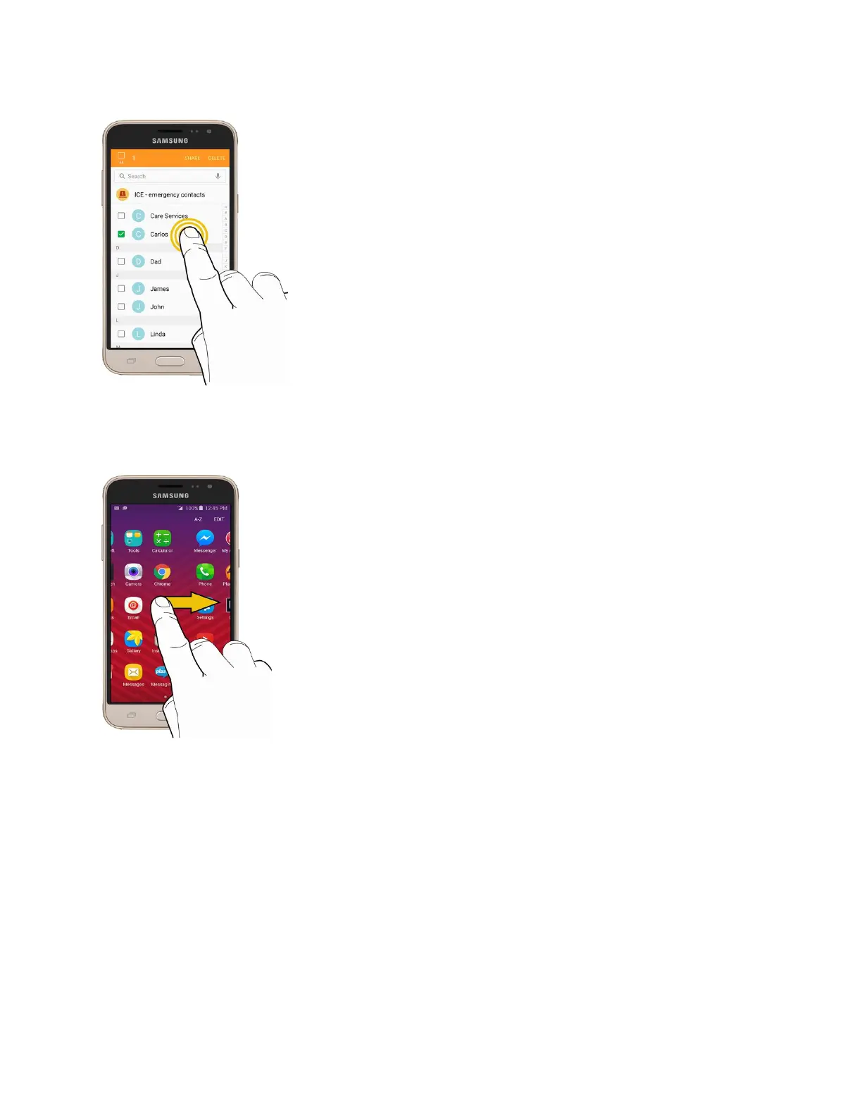 To swipe or slide means to quickly drag your finger vertically or horizontally across the screen.