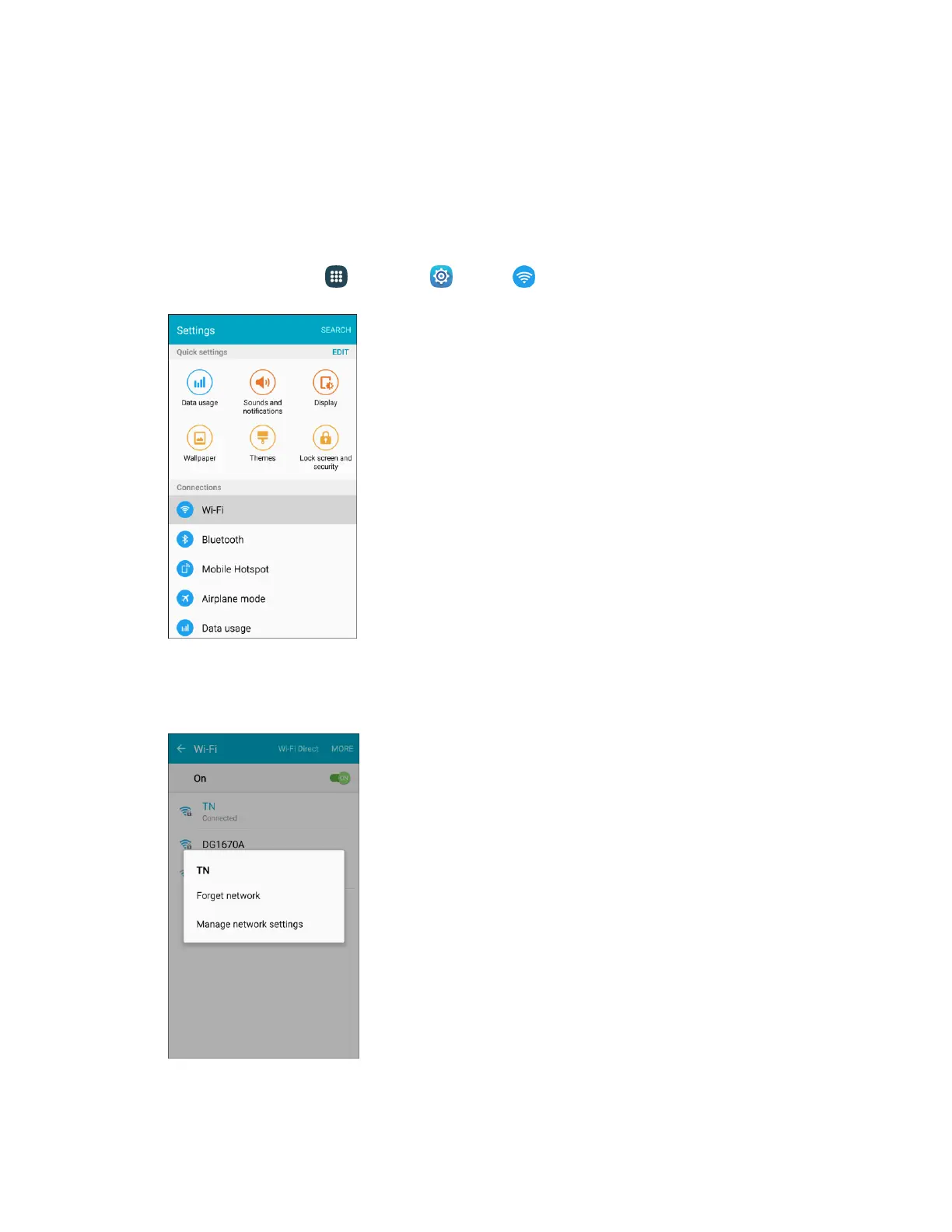 From home, tap Apps > Settings > Wi-Fi . 1.