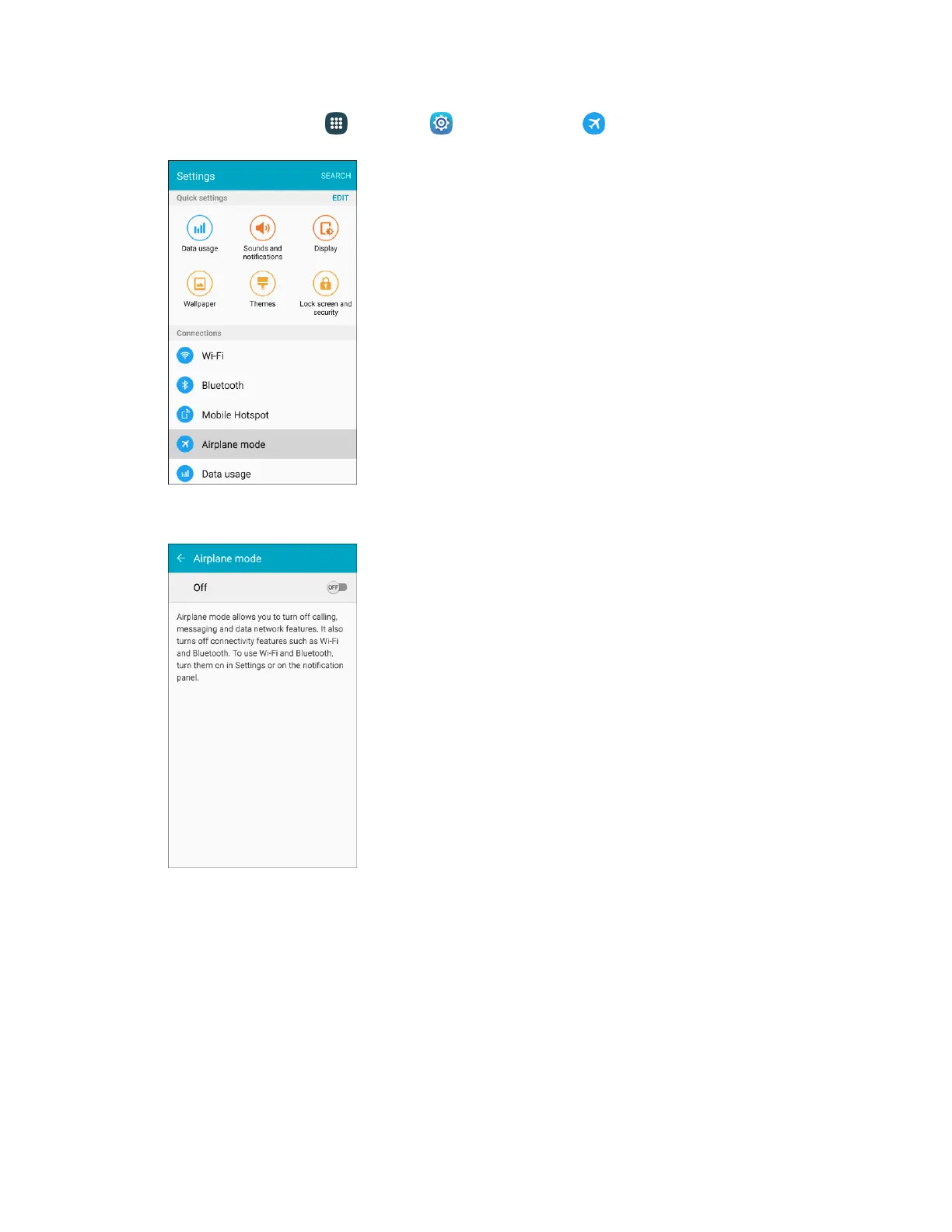 Note: You can also enable or disable Airplane Mode through the notification panel Quick settings (drag