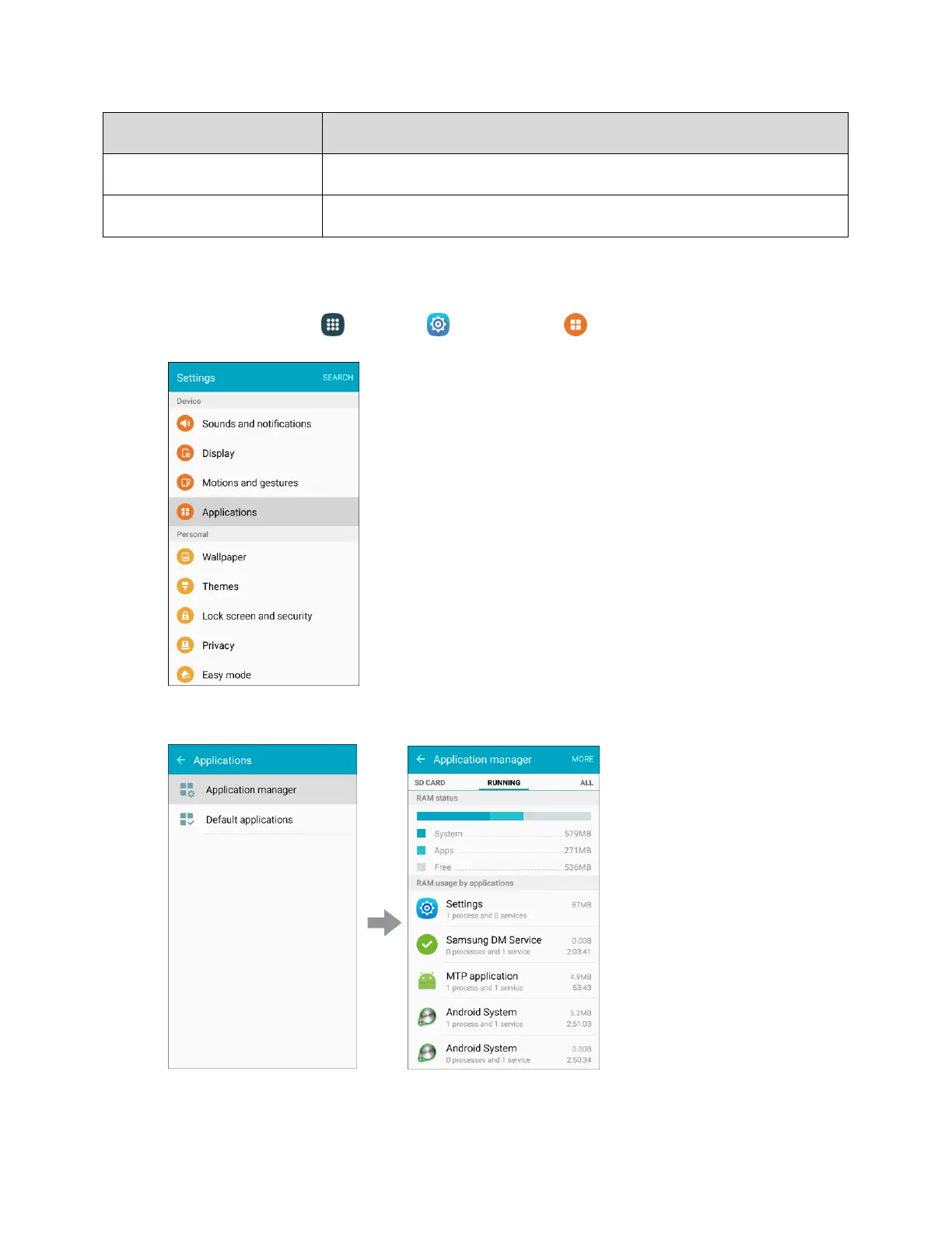 From home, tap Apps > Settings > Applications . 1.