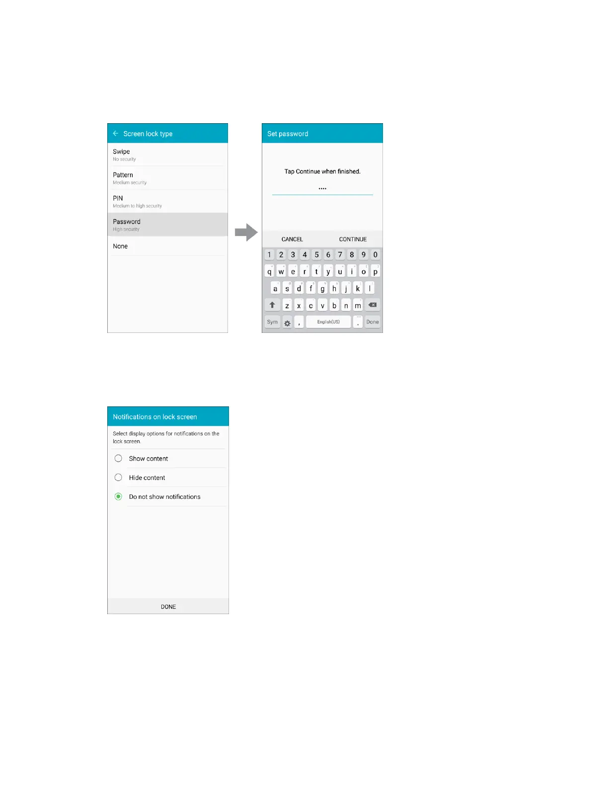 Enter a password with at least 4 characters, including at least one letter, tap Continue, and then 2.