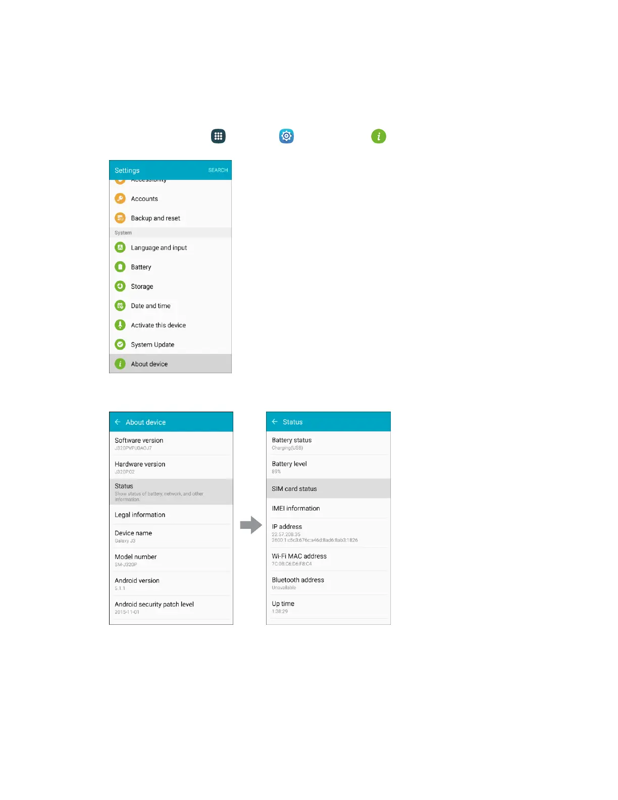 From home, tap Apps > Settings > About device . 1.