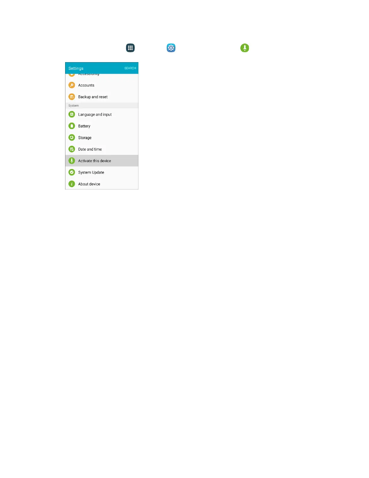 From home, tap Apps > Settings > Activate this device . 1.