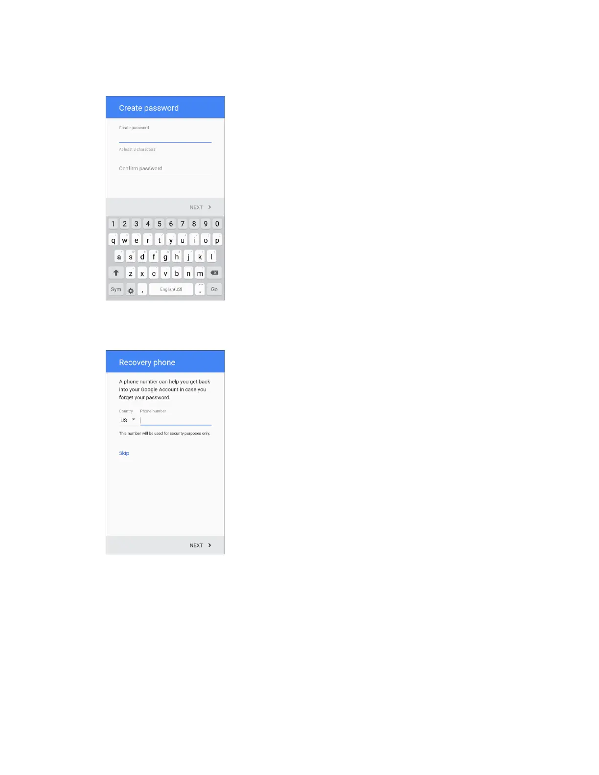 Note: When setting up a new Google Account, either on your phone or online, you will be prompted to