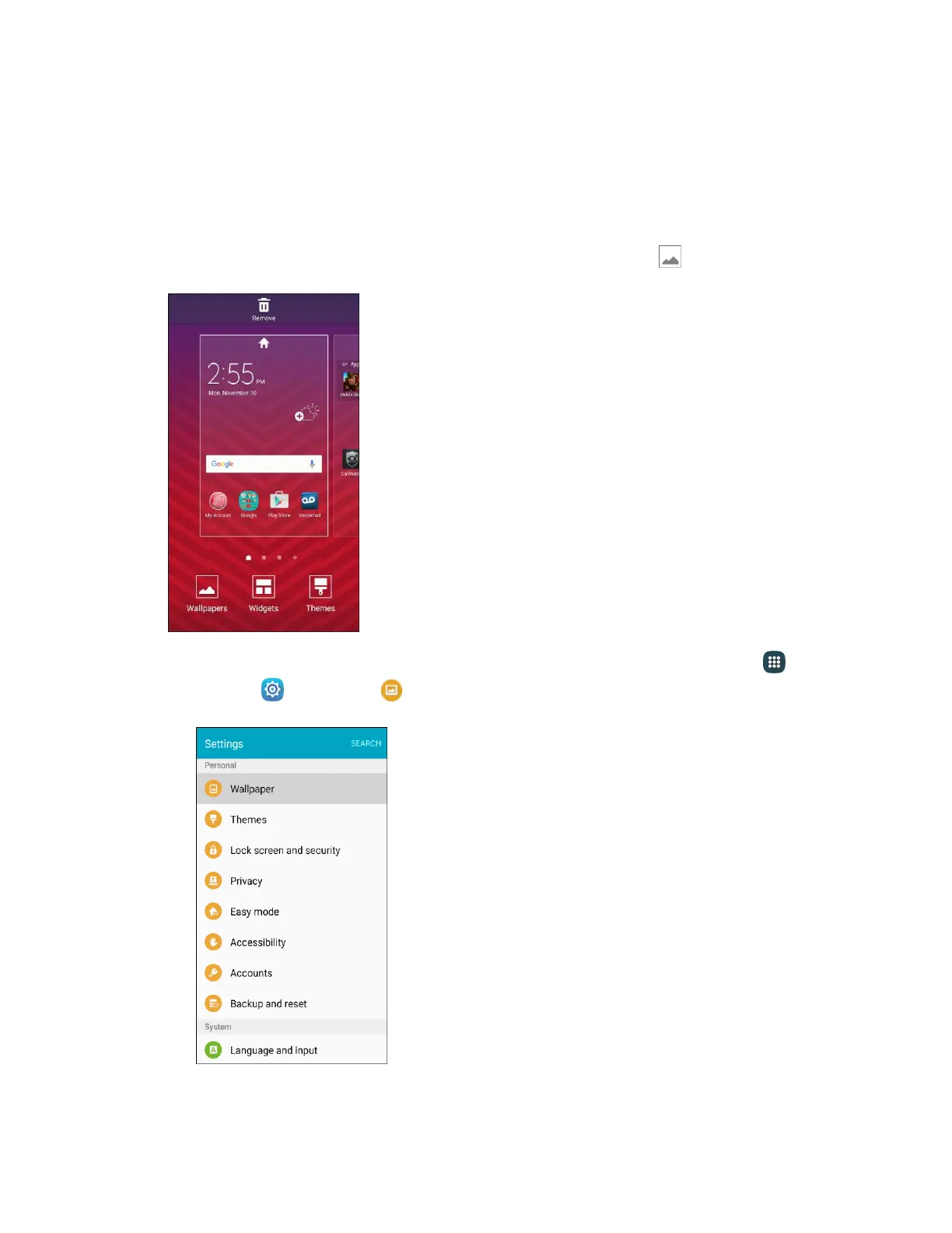 Settings > Wallpaper .