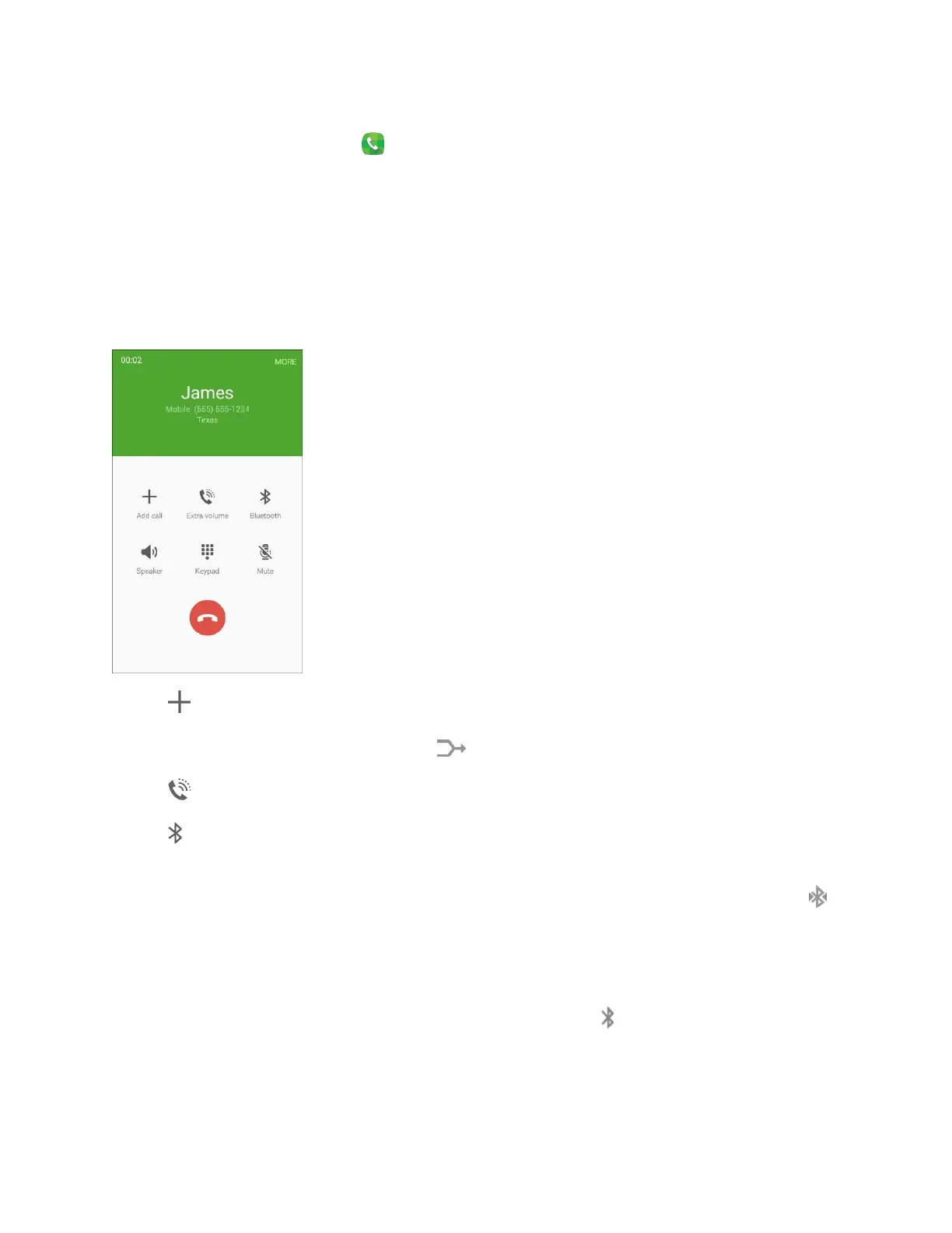 To route the current call back to the phone, tap Bluetooth to temporarily use the phone.