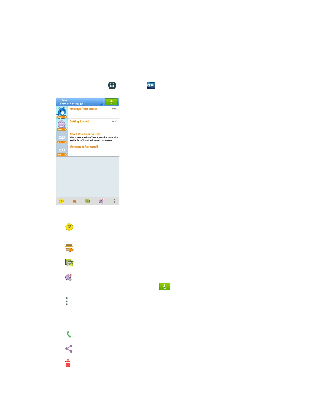 Your visual voicemail options appear as icons at the bottom of the voicemail review screen.