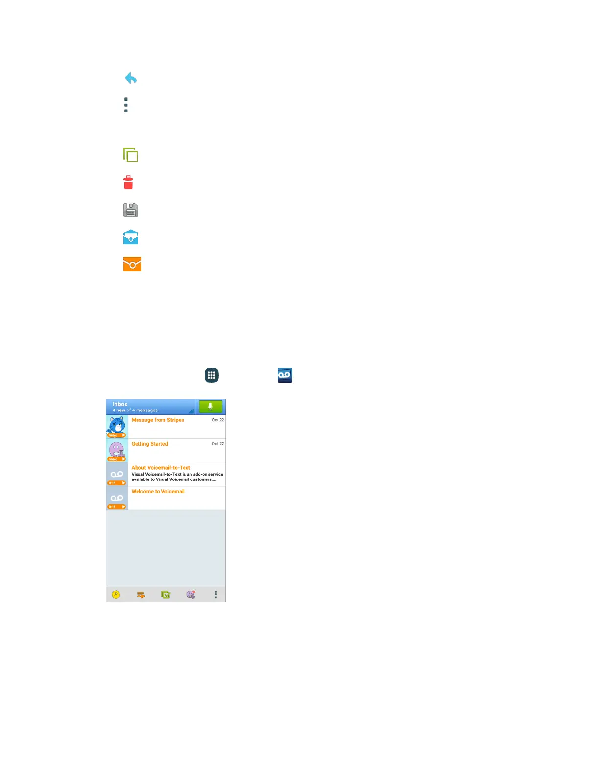 From home, tap Apps > Voicemail . 1.