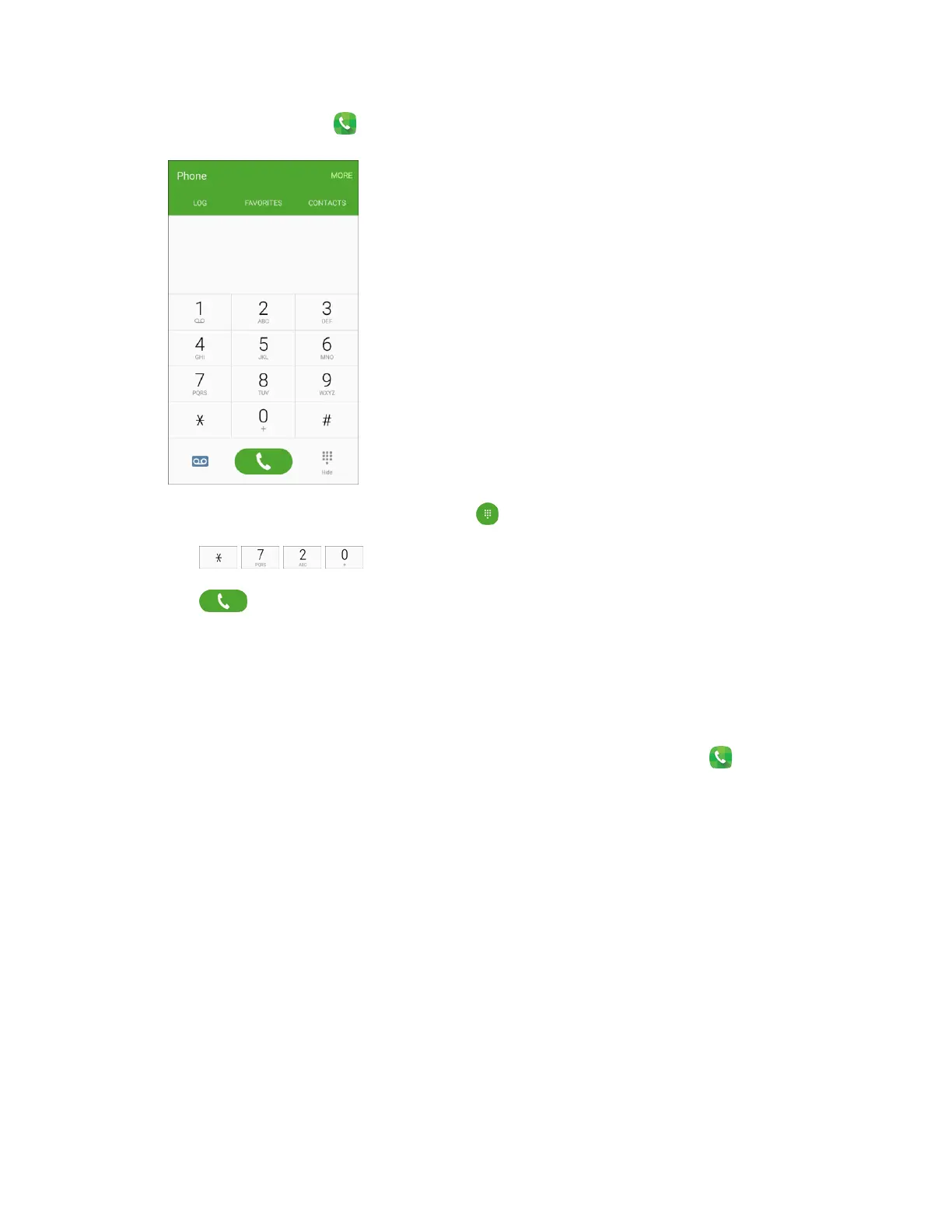 From home, tap Phone . 1.