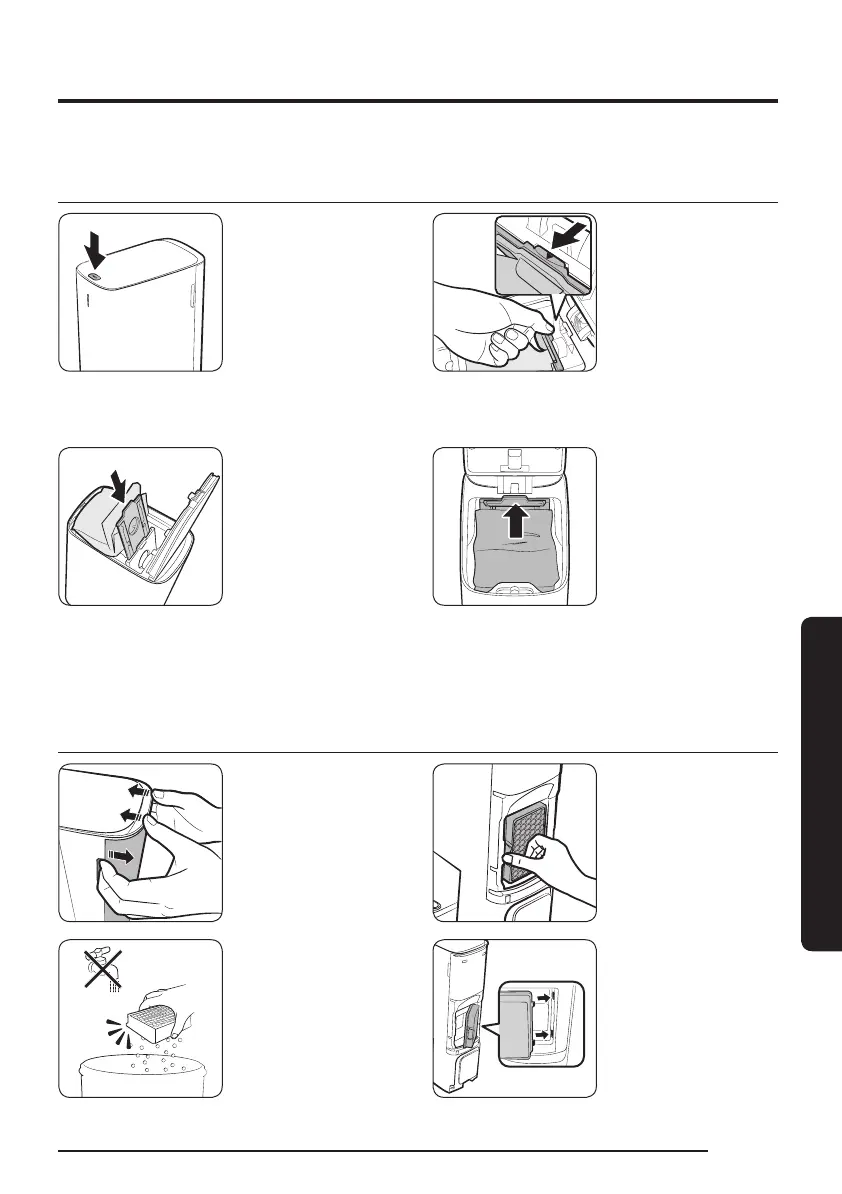 Samsung Jet Bot - Auswechseln des Staubbeutels; Reinigen des Feinstaubfilters; Säubern der Reinigungsstation