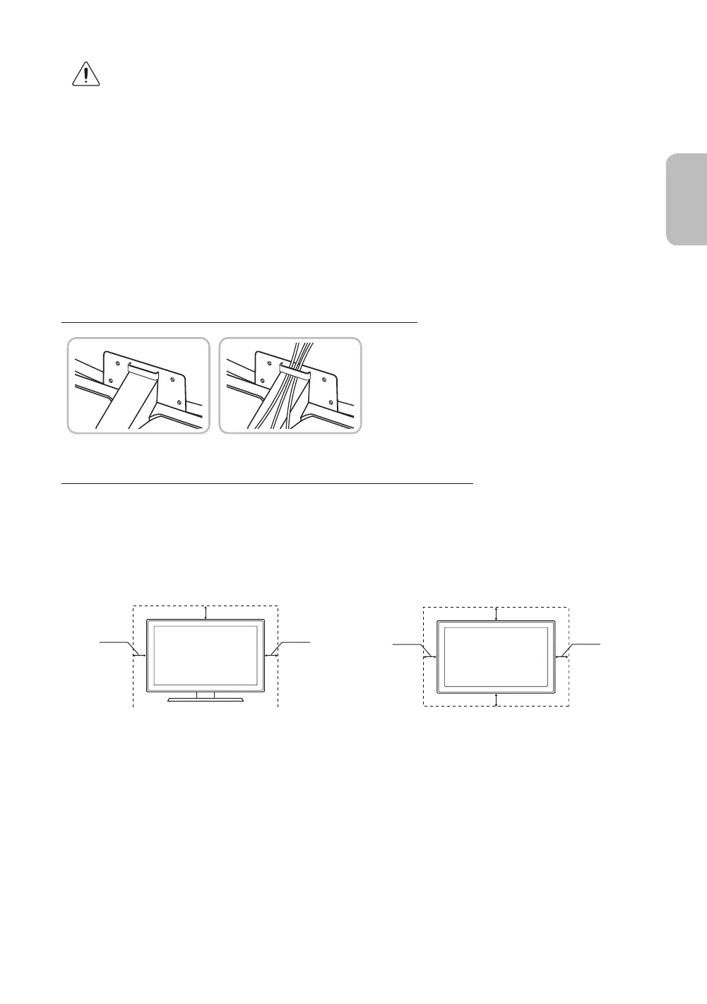 cm tra il televisore e gli elementi circostanti (per esempio pareti, pannelli del vano TV, ecc...). Una ventilazione inadeguata può