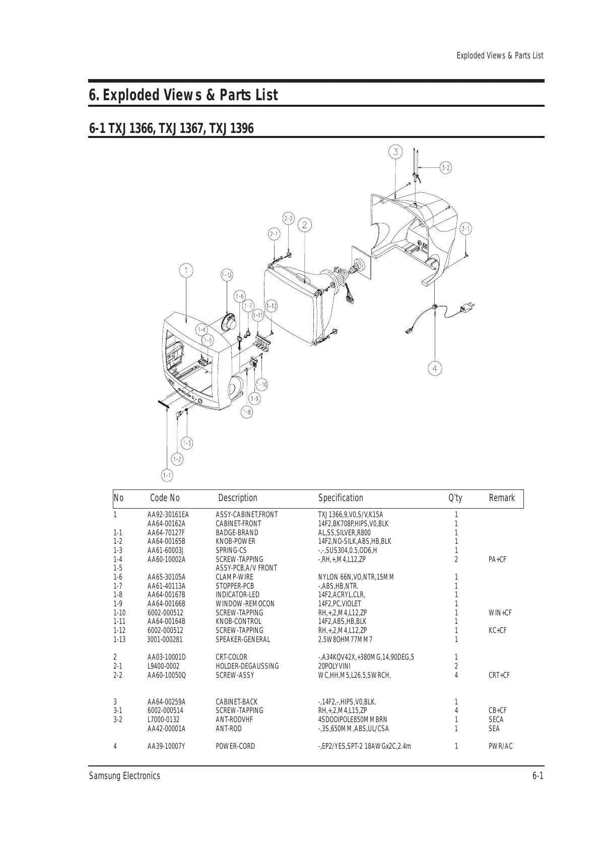 1 AA92-30161EA ASSY-CABINET,FRONT TXJ1366,9,V0,S/V,K15A 1