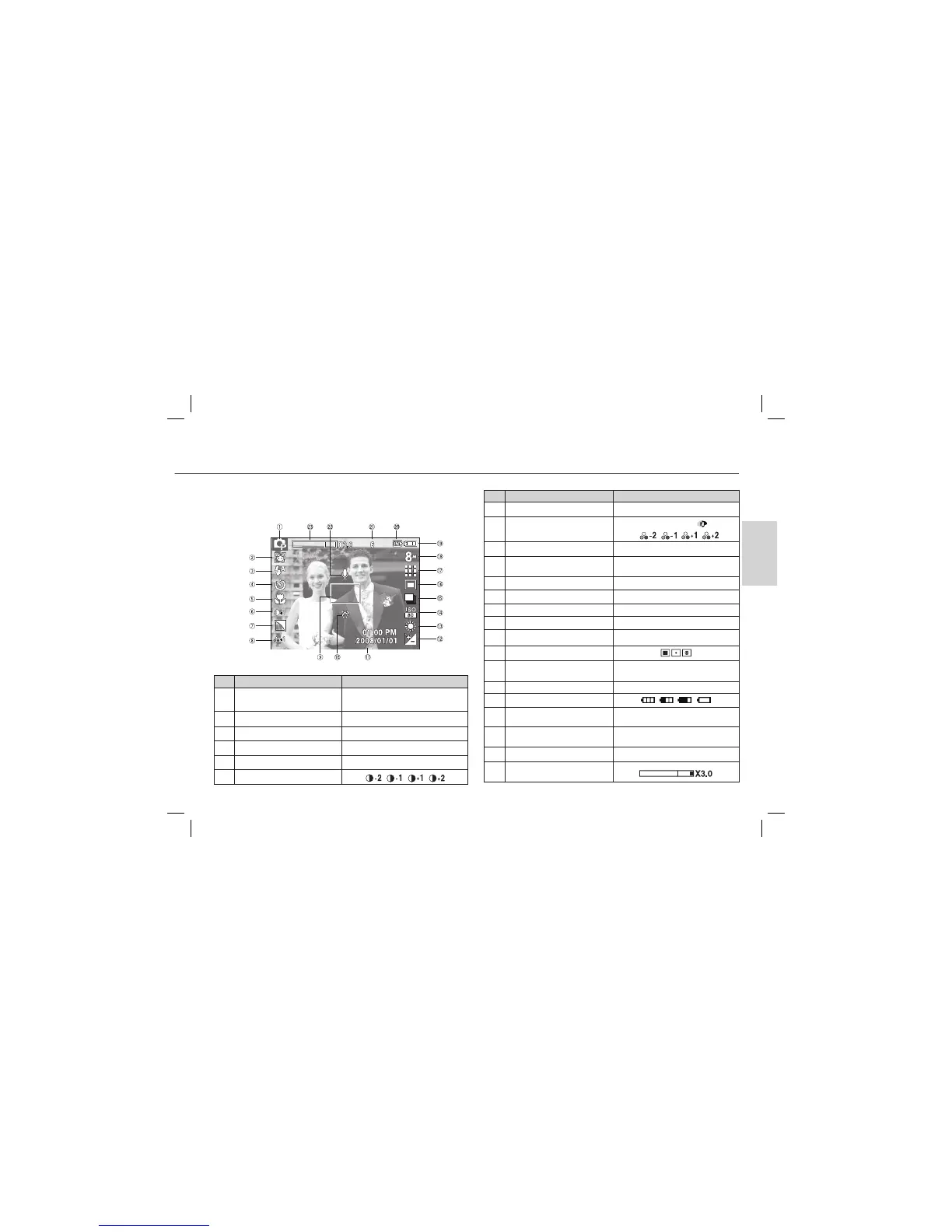 sélections de prise de vue. Reportez-vous au manuel d’utilisation se